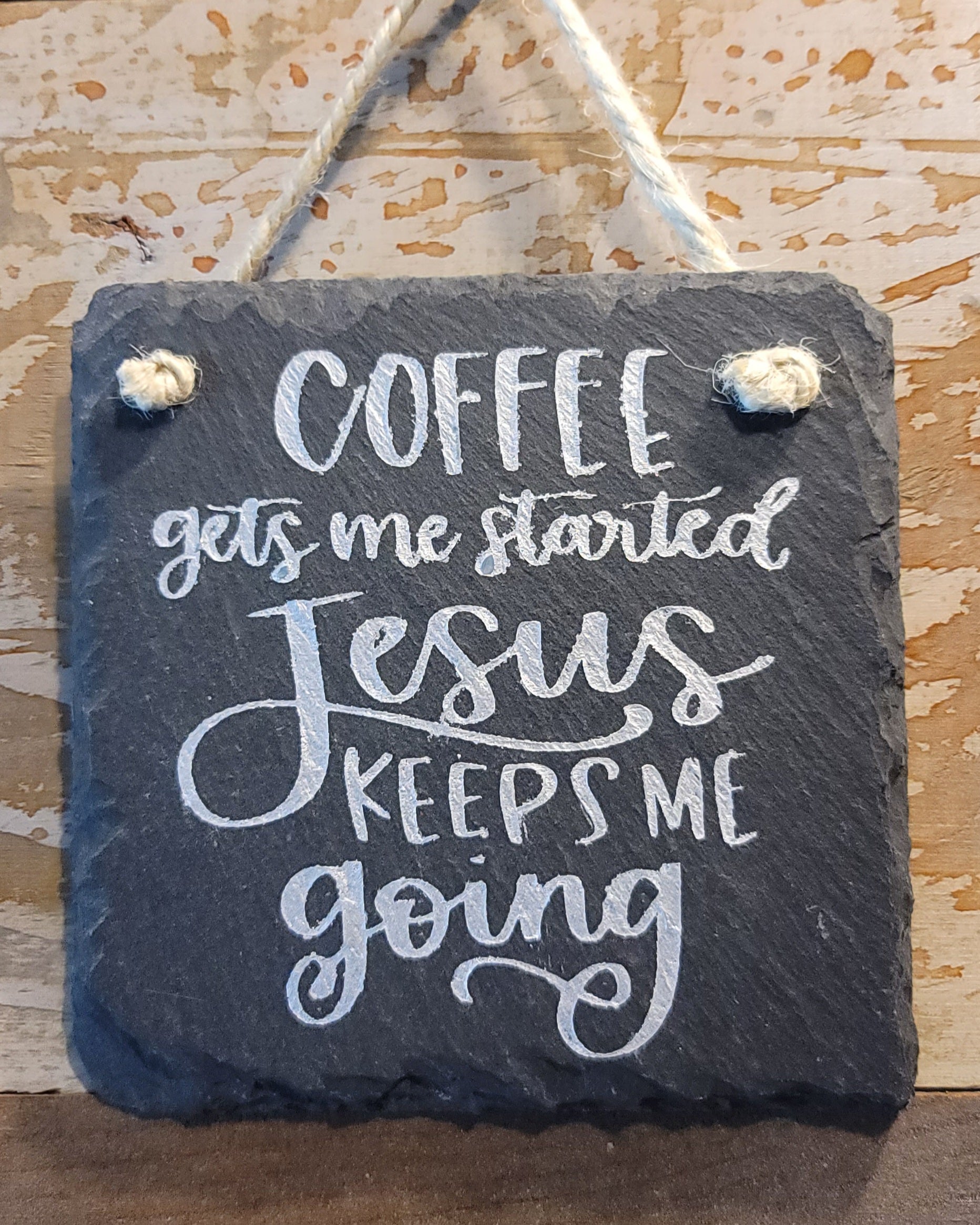 4x4 painted hanging slate coffee and Jesus