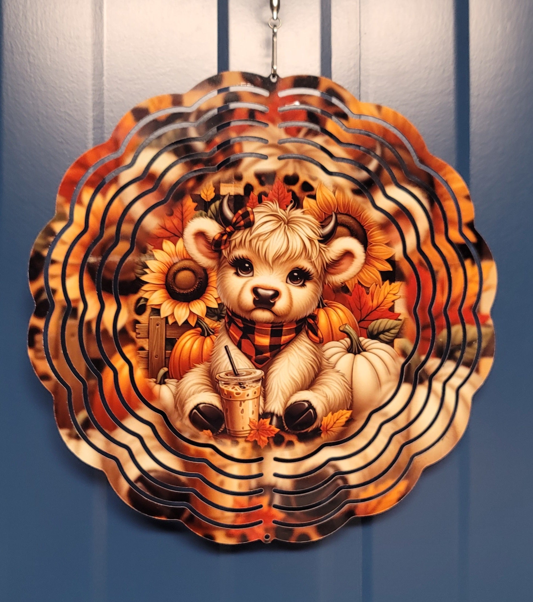 8 inch wind spinner with baby cow